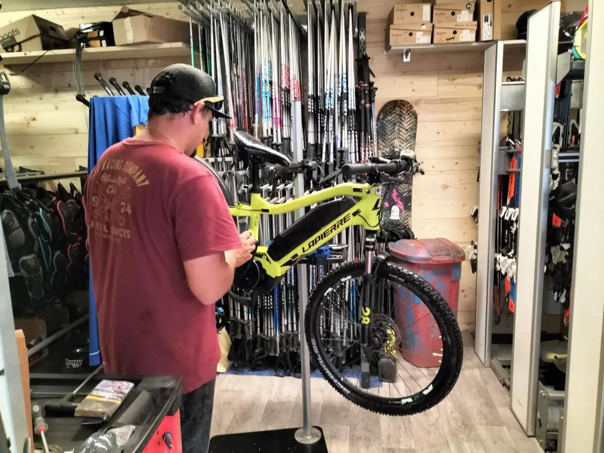 Tous nos vélos loués en été pour vos balades, vos sorties sur le bike-park, vos ascensions en route des cols mythiques des Alpes du Sud, passent par la case révision dès qu'ils nous sont rendus. Nos mécanos travaillent pour vous permettre de circuler et de vous amuser en toute sécurité. Mais ils peuvent aussi intervenir sur votre matériel, en cas de panne soudaine, de doute ou juste pour la révision annuelle.